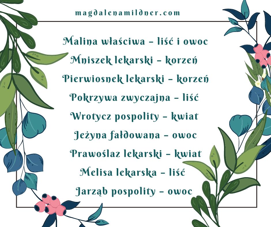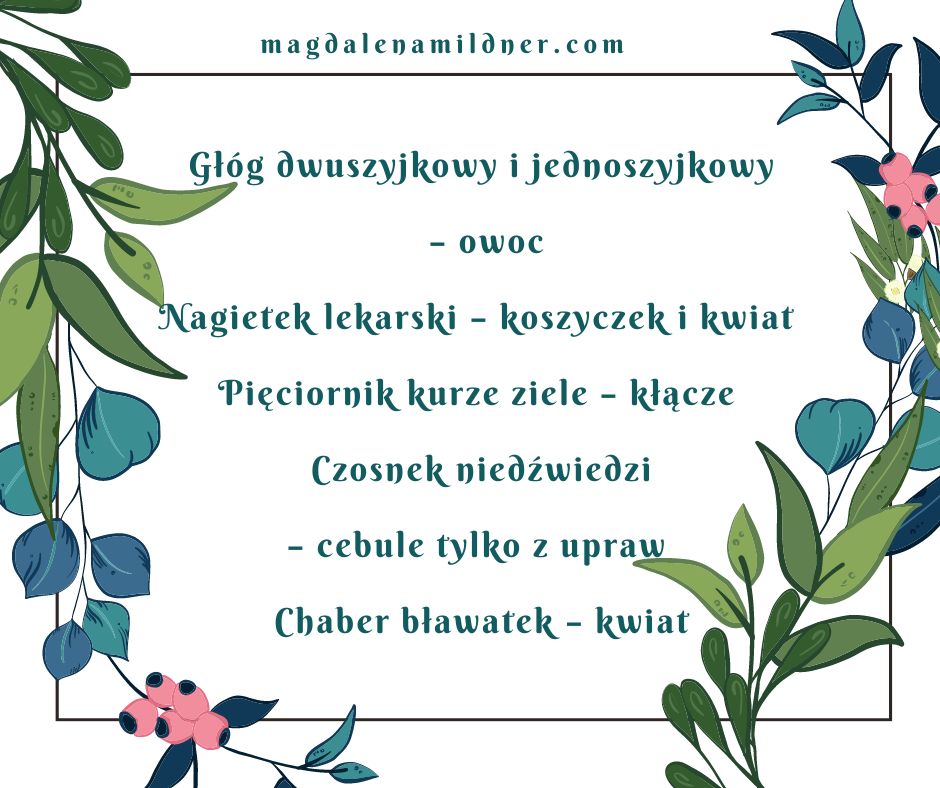 Jesień to też czas zbiorów. Zbieramy liście, kwiaty i owoce. Nie zapomnijcie o kalinie koralowej – jej poświęcę osobny wpis. Jest to bardzo kobiece ziele, każda z nas powinna mieć je w domu.