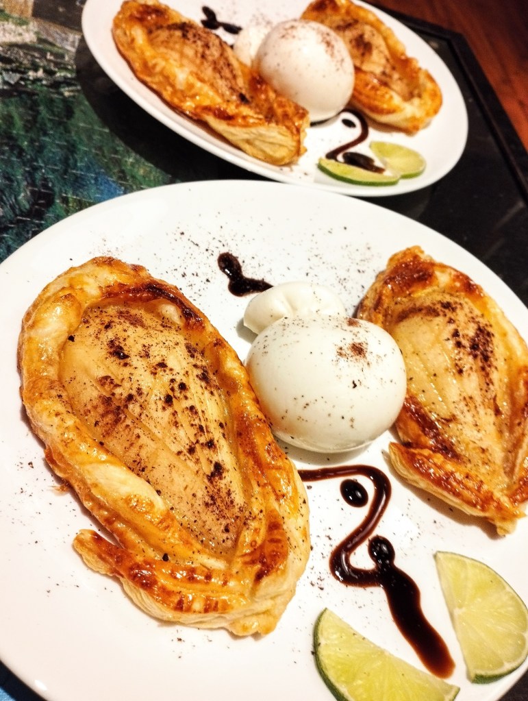 11. Gruszki w cieście francuskim z burratą i gorzką czekoladą