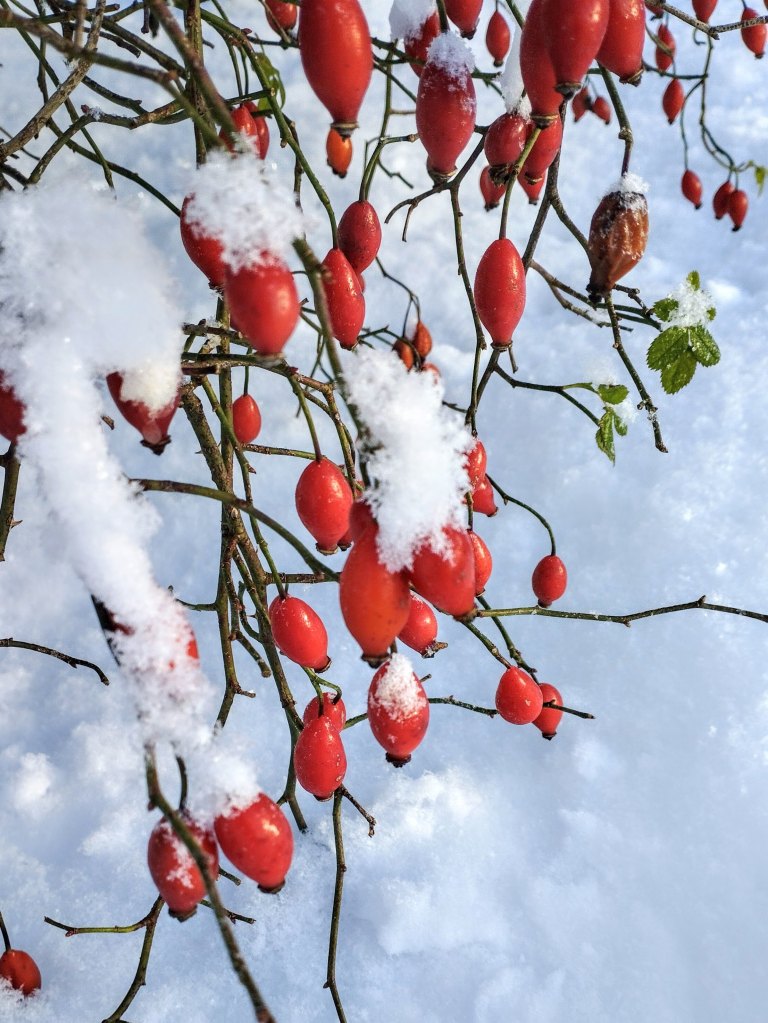 Nie zebrałam wszystkich owoców z mojego krzaka w tym roku, zostawiam sporo dla ptaków. Pogoda mroźna i przyszła mi ochota na zupę z dzikiej róży. To tradycyjna szwedzka zupa, jednak w oryginale dla mnie zbyt słodka więc zmieniłam przepis dodając kilka składników.