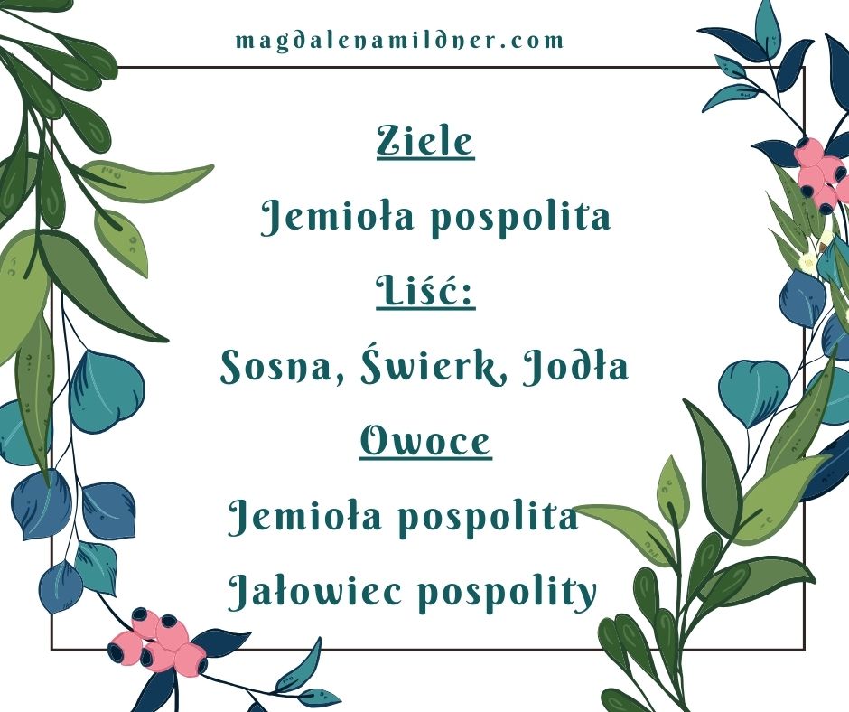 To też najlepszy czas na zbiór szpilek drzew iglastych, które są teraz najzasobniejsze w olejki, a chodząc po lesie czy sadach szukajcie jemioły.